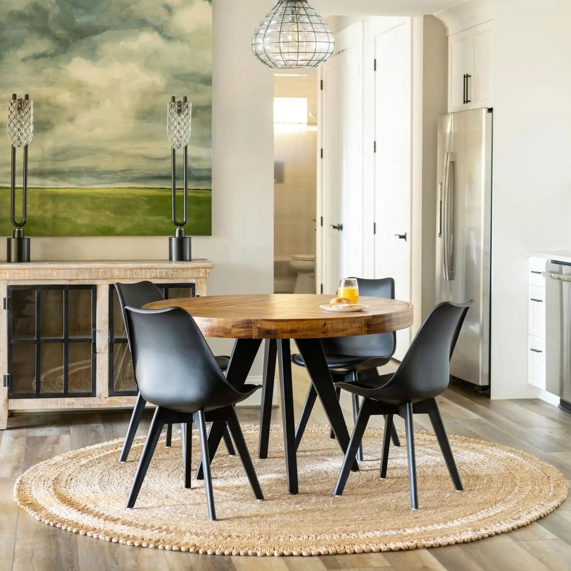 Ide yang sama bisa diterapkan saat memilih ukuran karpet ruang makan dirimu. Sebagai petunjuk khalayak umum, permadani dirimu harus cukup besar buat menampung meja dan kursi makan dirimu saat dipanjangkan. Ini biasanya berarti menambahkan 30 inci ekstra dari tepi meja saat mengukur ukuran permadani dirimu. jikalau dirimu membeli satu yang terlalu besar, dirimu mungkin bisa lolos begitu saja. Terlalu mungil dan permadani dirimu cuma akan terlihat konyol di dalam ruangan!