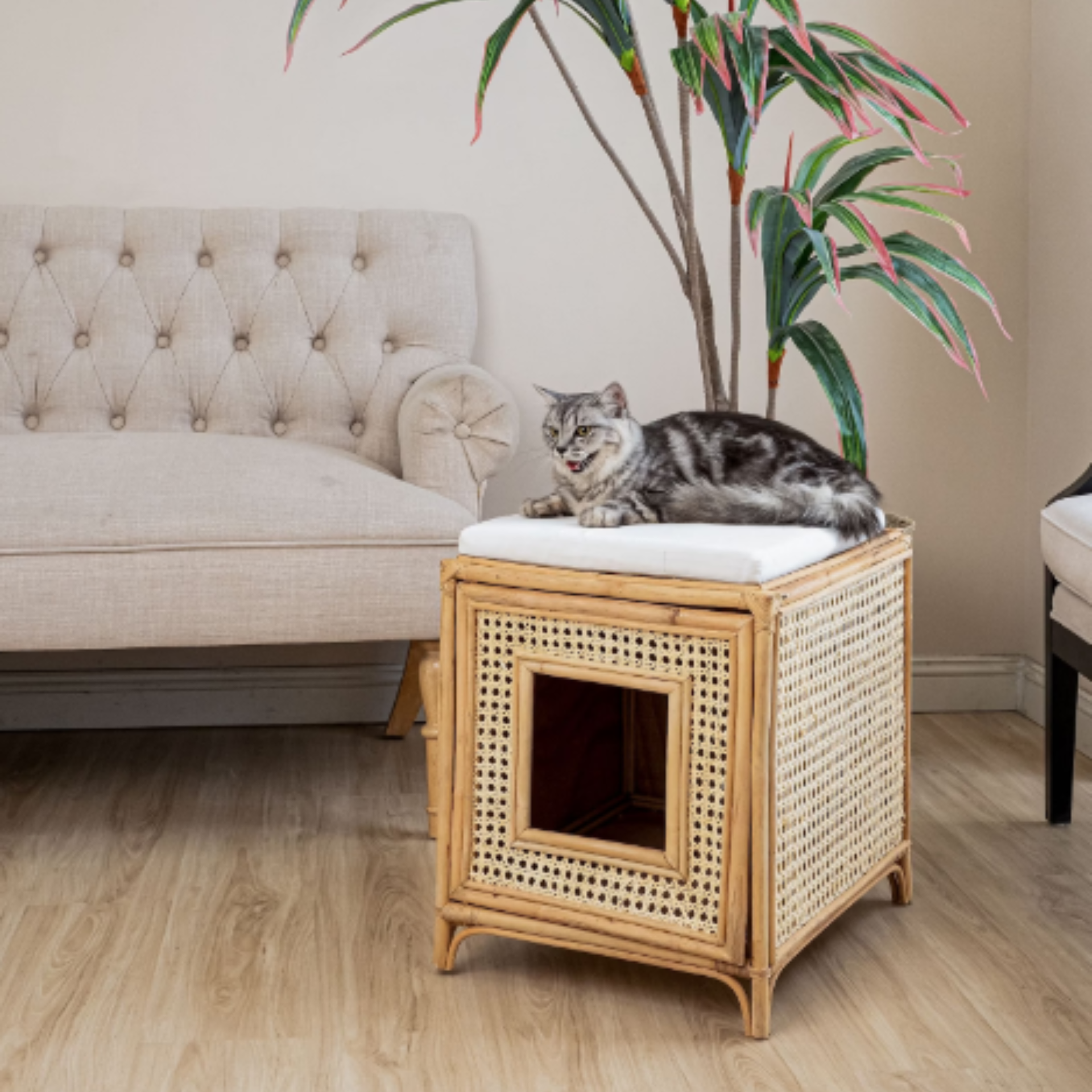 Ini bahkan tidak terlihat seperti perabot fauna peliharaan, tetapi lihatlah, ini adalah kotak kotoran. Pola anyamannya adalah scandi dan boho, tetapi pada saat yang sama cukup universal untuk disesuaikan dengan berbagai gaya interior. Ukuran dan bentuknya membuatnya mudah masuk ke tata letak kamu yang telah sedia, dan kayu alami menciptakan suasana santuy.