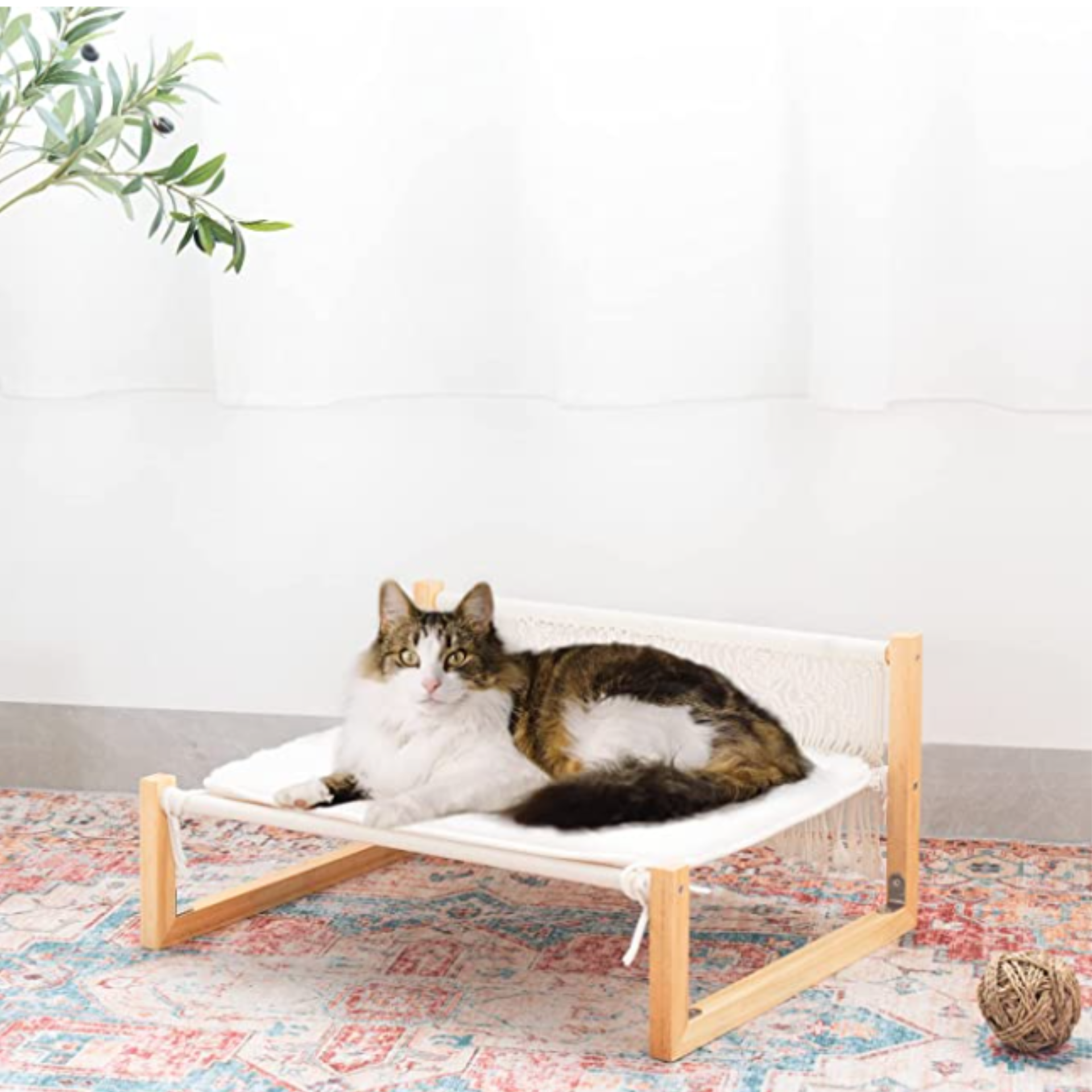 Tempat tidur gantung bisa terlihat sama bagusnya di dalam ruangan seperti di luar ruangan, dan tempat tidur gantung yang menenangkan ini sangat cocok untuk kucing yang suka tidur sebentar. Tekstur macrame yang manis akan menambah kelembutan dan gaya pada interior kamu, dan warna-warna netralnya tak lekang oleh durasi. Juga tidak telah sedia kemungkinan kucing kamu menyembunyikan sesuatu di atas atau di bawahnya.