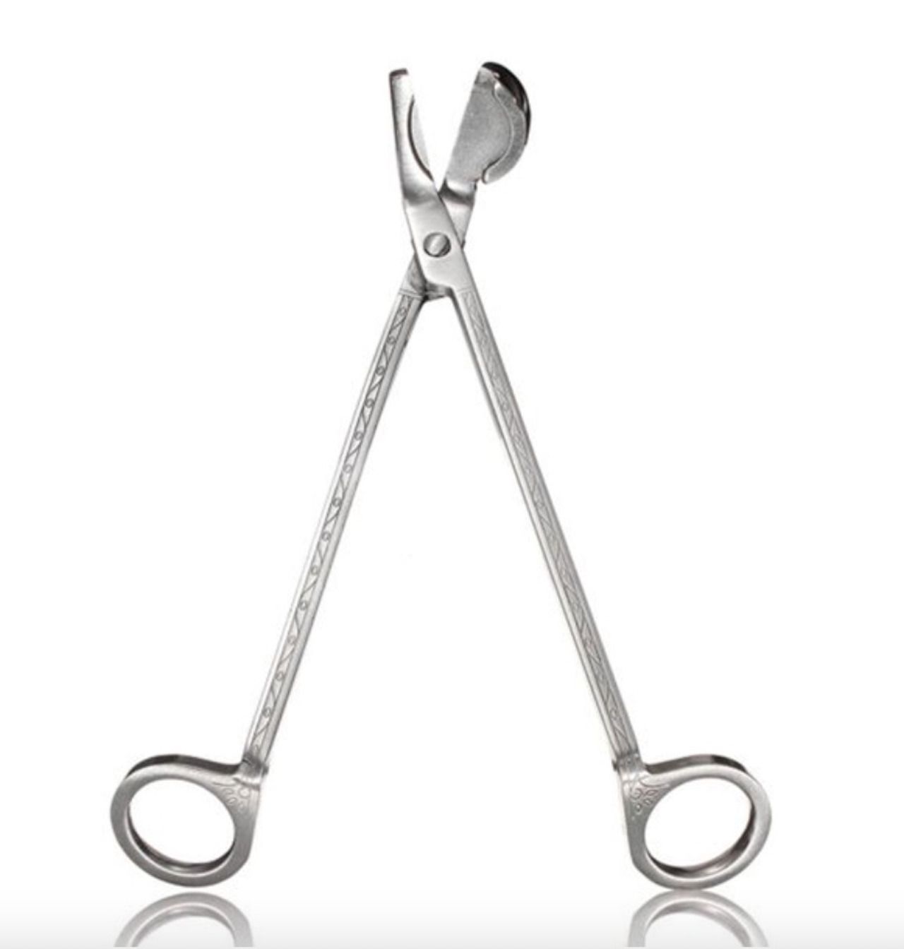 Pemangkas sumbu baja tahan karat berwarna perak nyaman digenggam, tahan lambat, dan elegan. ciptaan terukir memberikan pop ekstra ekstra. Pastikan untuk menggunakannya saat memotong aroma bunga favorit anda sebelum musim semi.