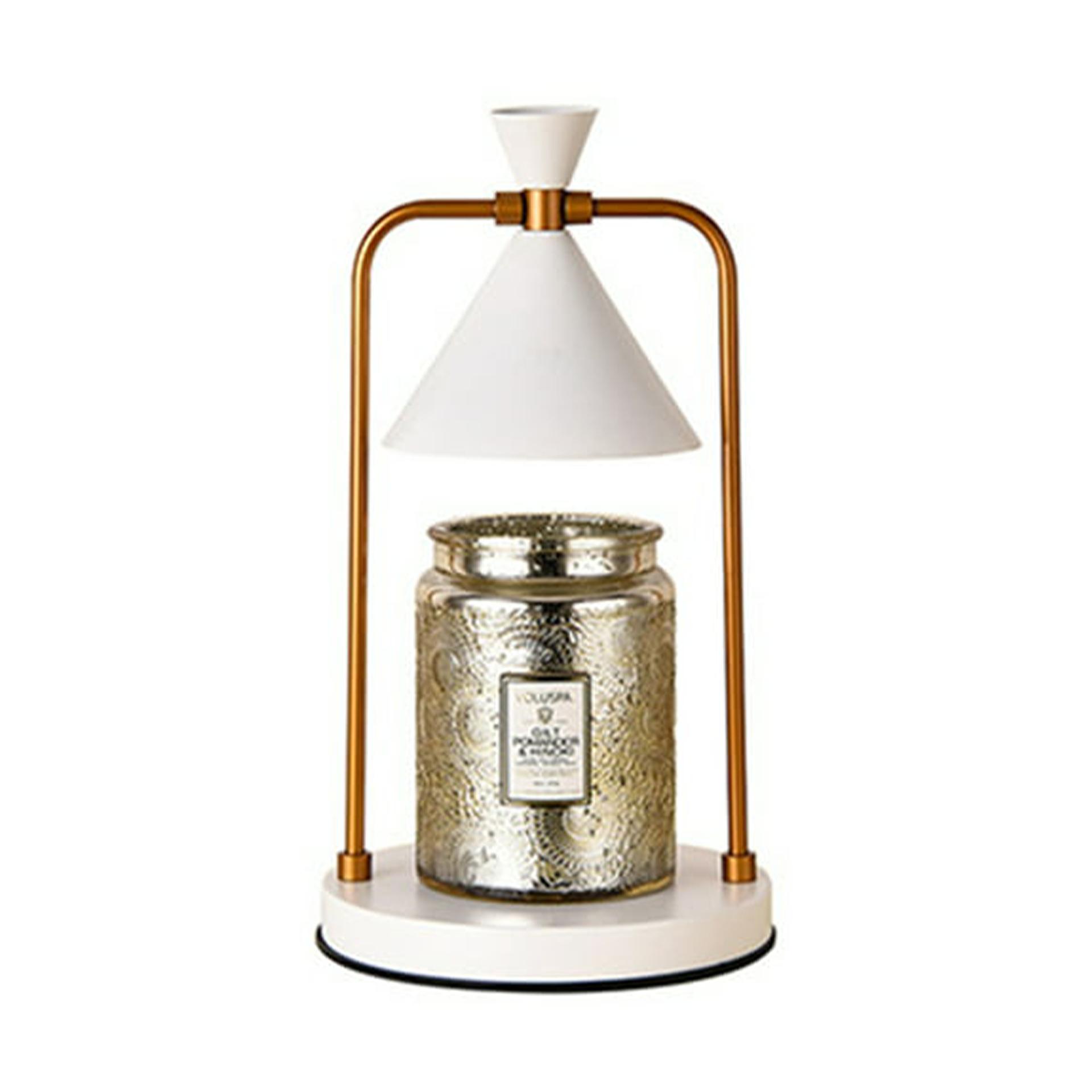 Penghangat lilin berwarna putih dan tembaga