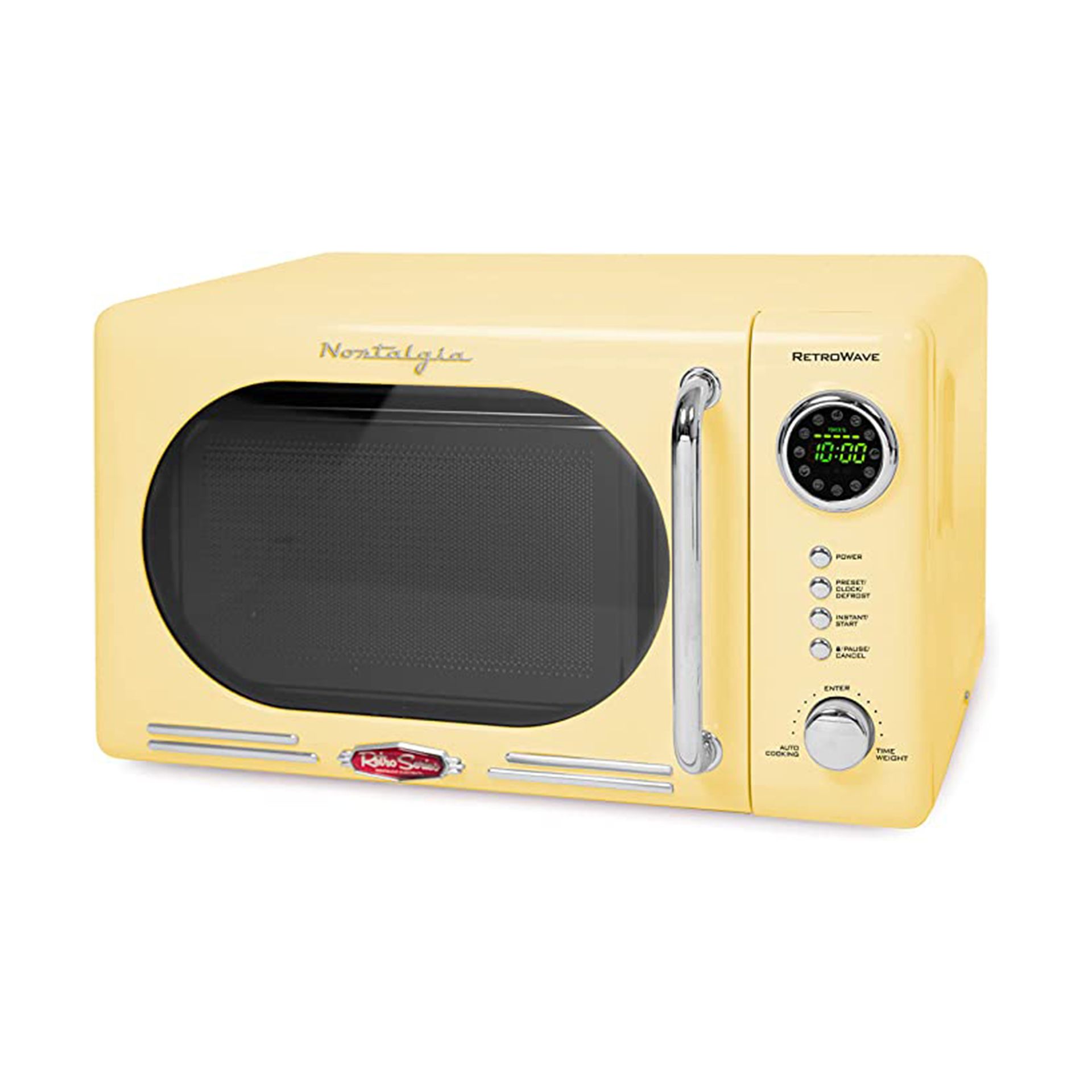 Oven microwave countertop kompak retro nostalgia dengan rona kuning