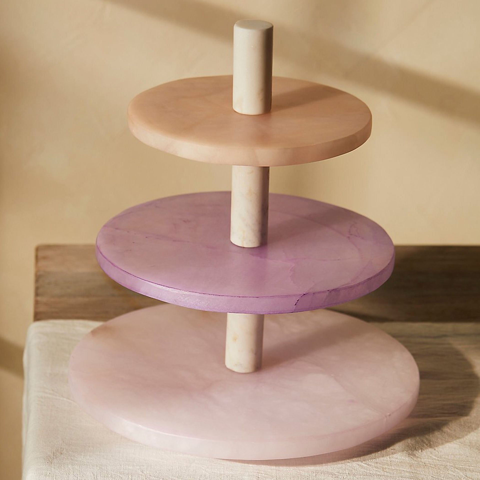 Tempat saji alabaster bernoda 3 tingkat, Ungu