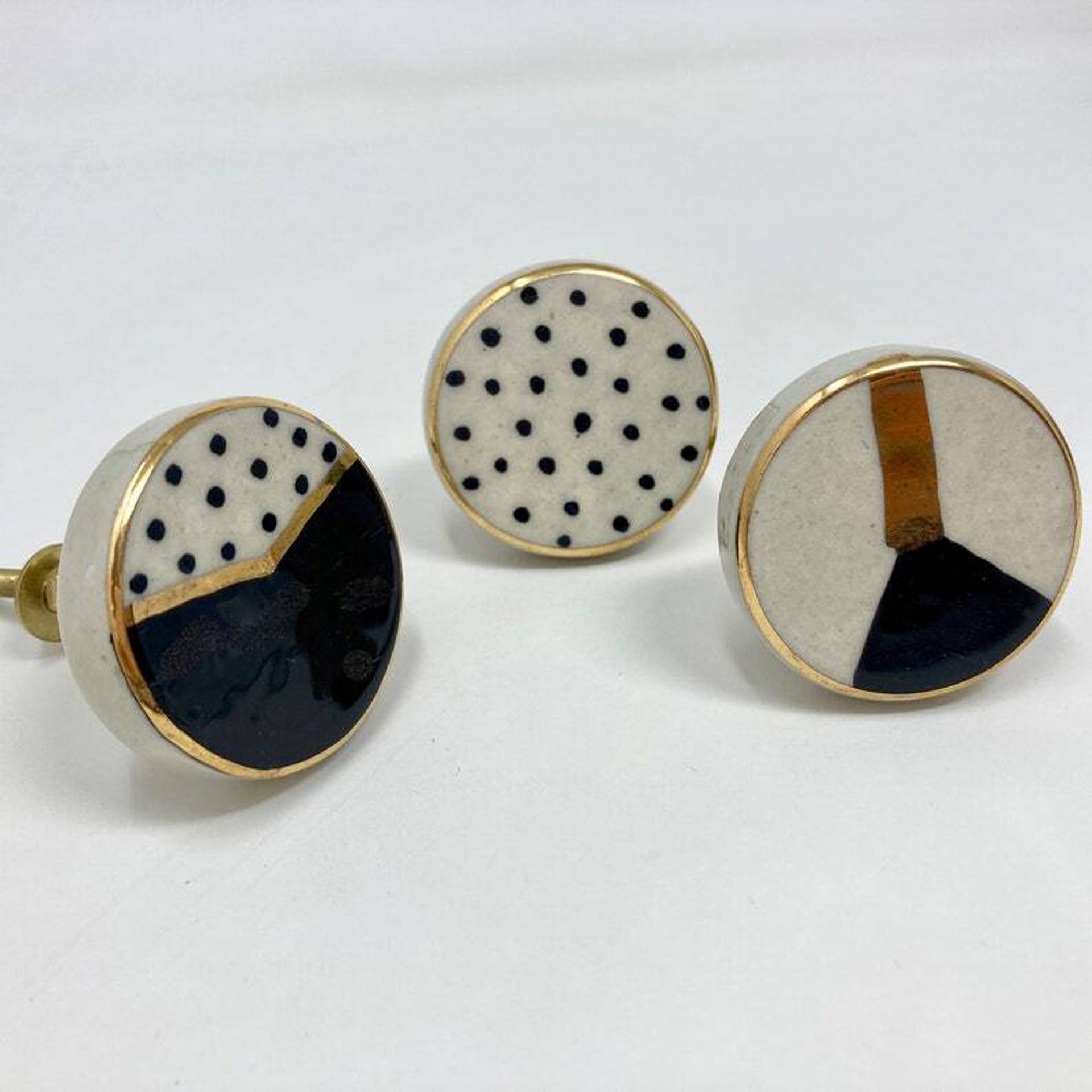 MakeItFabulousStore Tombol Keramik Lukis Tangan dengan rona Emas, Hitam dan Putih