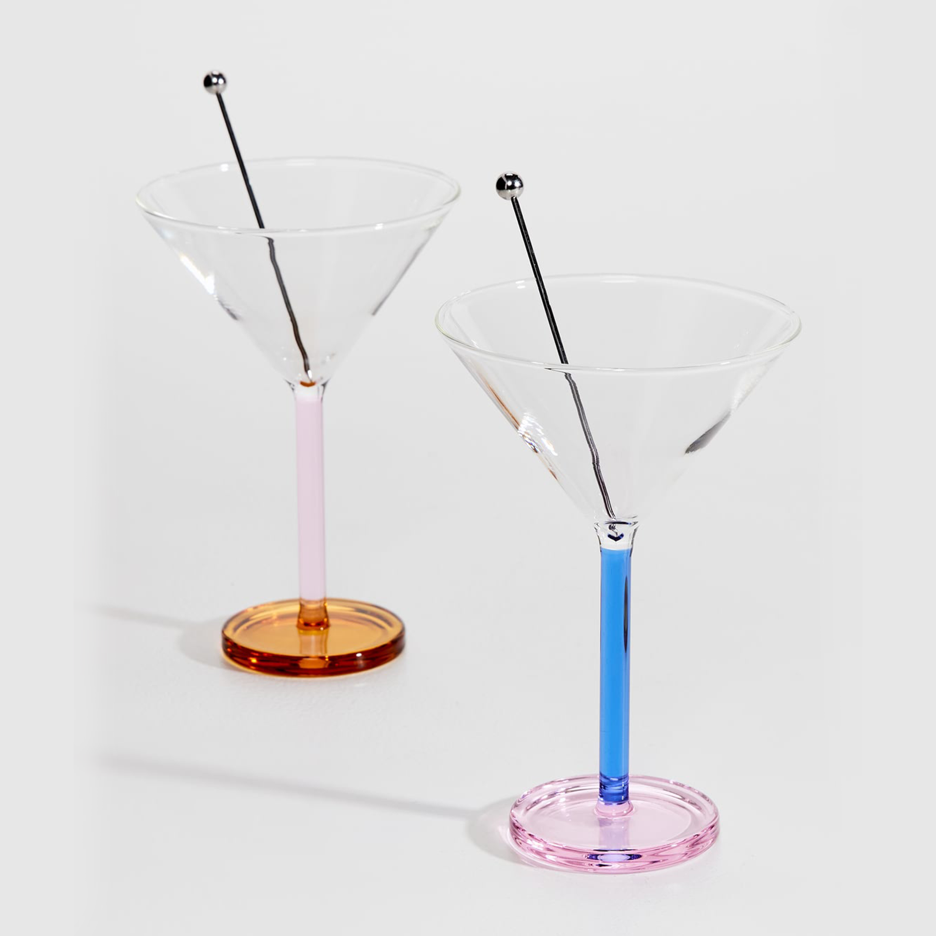 Sepasang gelas anggur dua rona dari Hay ini berwarna merah belia dengan batang oranye, palet rona yang mirip dengan salah satu gelas martini di set Piano Cocktail. Bentuknya juga menjadikan set ini pilihan yang bagus dan serbaguna buat anggur, air, atau minuman apa pun yang anda harap akan membikin sedikit lebih menyenangkan.