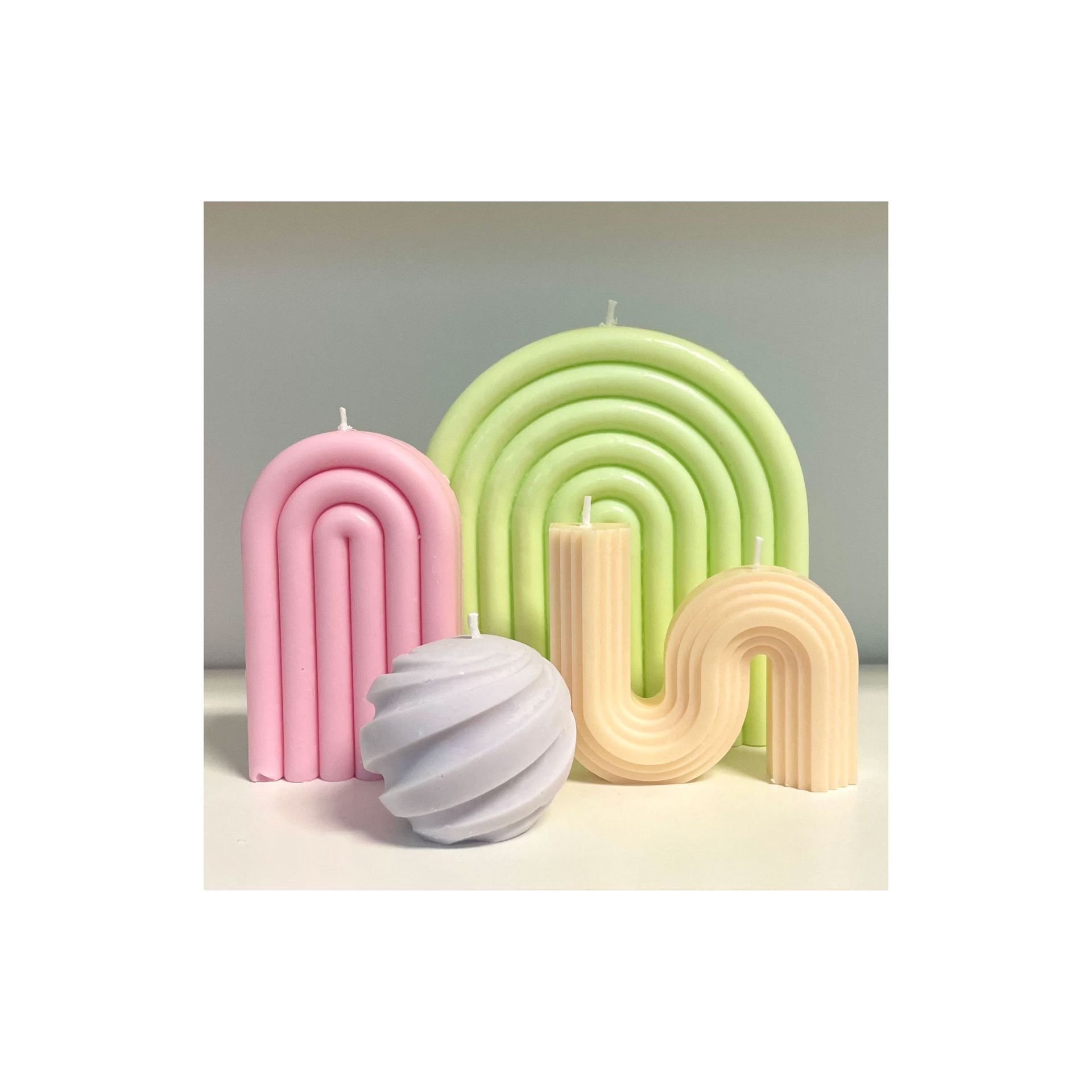 1. Tambahkan lapisan dekoratif![Meja kopi putih melengkung dengan buku dan lilin di ruang tamu yang terang]()