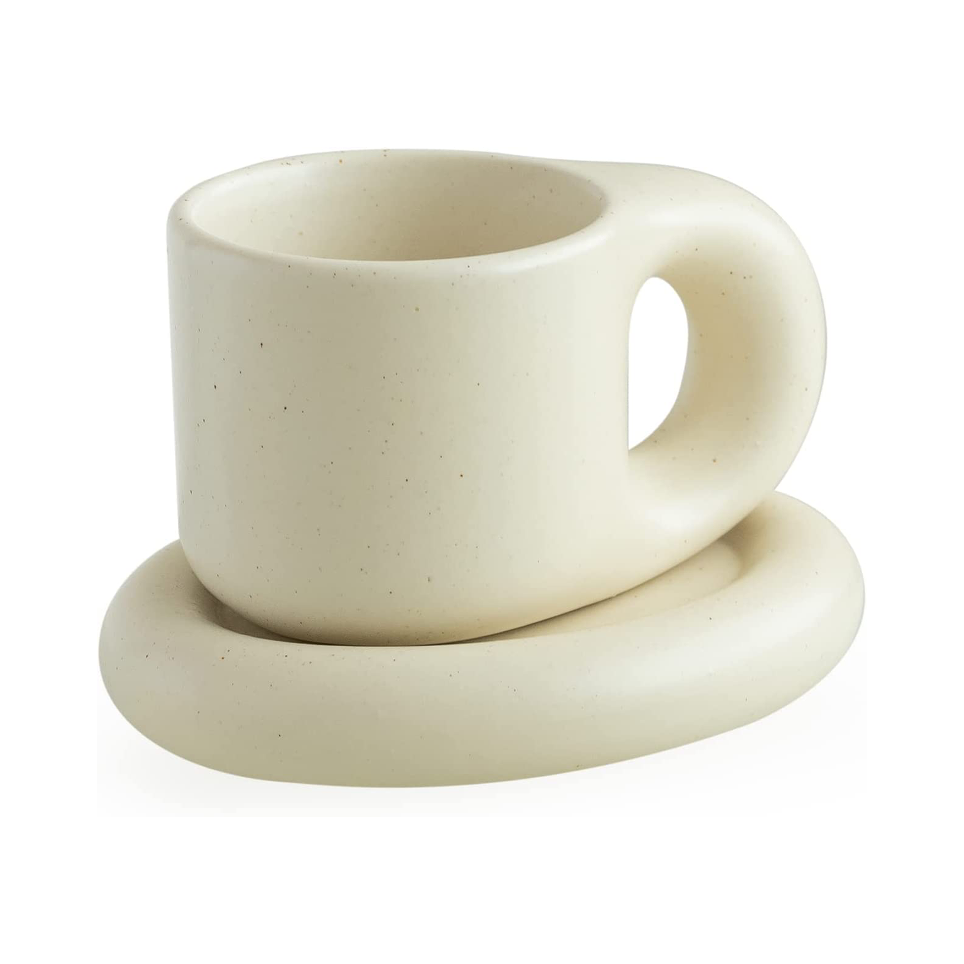 cangkir dan piring berbintik-bintik matte ini sedang viral di TikTok saja, tetapi kami pikir mereka juga bekerja dengan sempurna untuk meniru getaran piring tebal Djerf dengan palet warna yang lebih netral dan ramah.