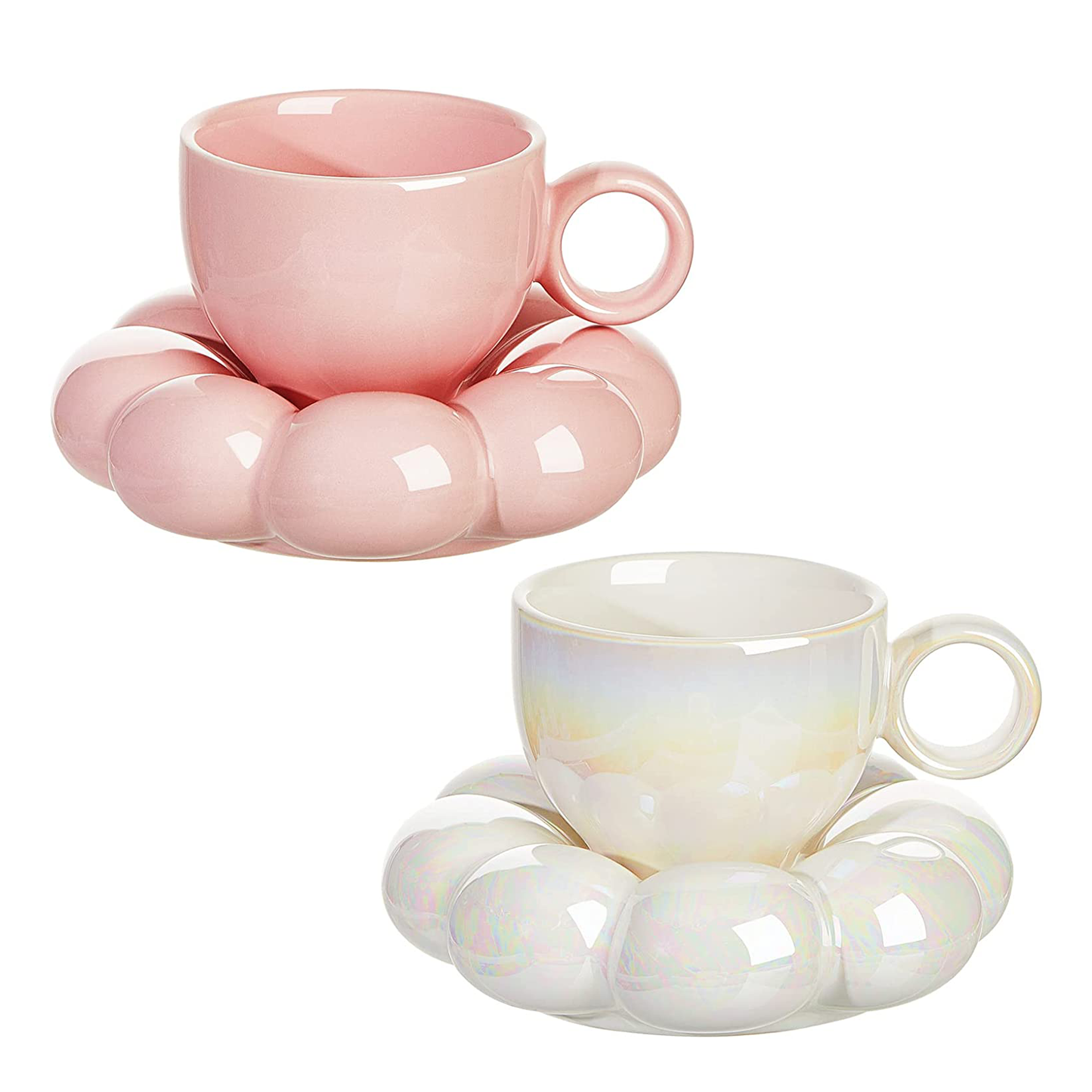 Sepasang cangkir teh yang menggemaskan dengan tatakan berbuih seperti awan ini hadir dalam warna pink dan putih mutiara. Mereka yaitu favorit internet lainnya dan akan cocok dengan pastel Denmark, gadis vanila, atau estetika gadis bersih.