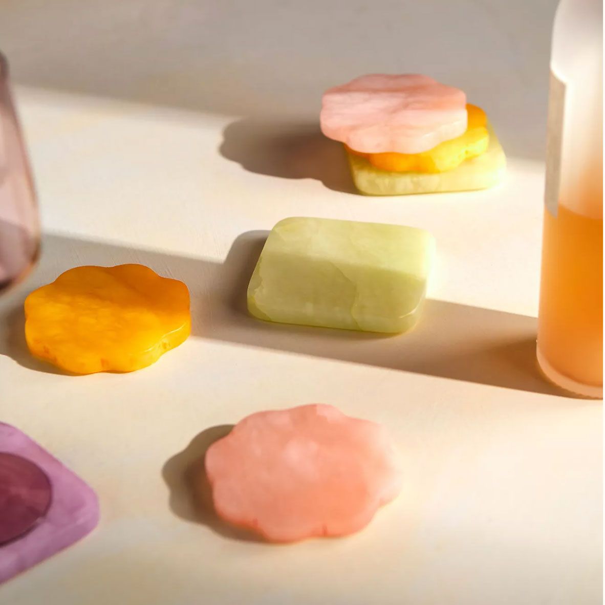 Suasana dan lilin melangkahkan kaki beriringan. Saya suka mengelompokkan lilin mini diptyque (Baies adalah favorit) dan pilihan lancip yang lebih berwarna buat keseimbangan. NEOM adalah merek lilin lain yang sangat saya sukai.