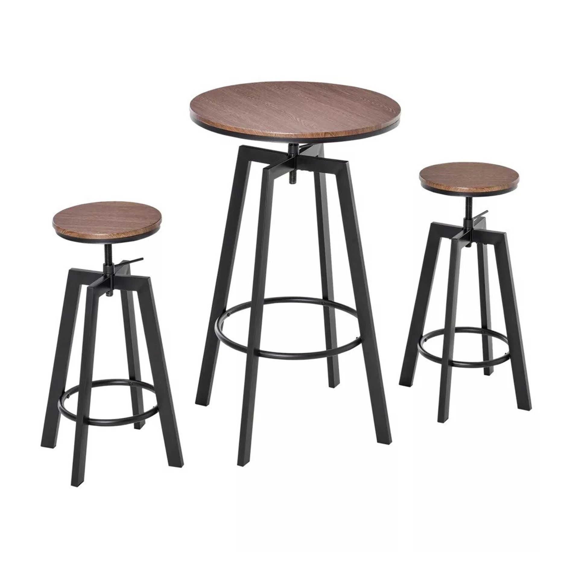 HOMCOM Set Meja Makan Industri 3 Piece yang mampu Disesuaikan